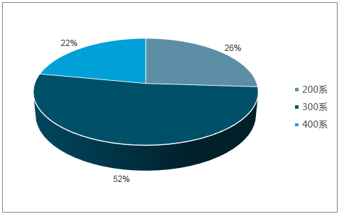 熱軋是不銹鋼材增長的主要推手,占比高達73.40%,17年同比增長3.12%;冷軋占比26.60%,17年同比減少2.95%。在牌號分組方面,300系鋼材占比最高,51.84%,200系占比25.62%,400系占比22.53%,去年各牌號產量不銹鋼均實現較大增長,今年各牌號產量基本與去年持平。